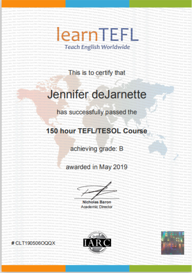 教師信息:持有持有國際英語教師資格證書